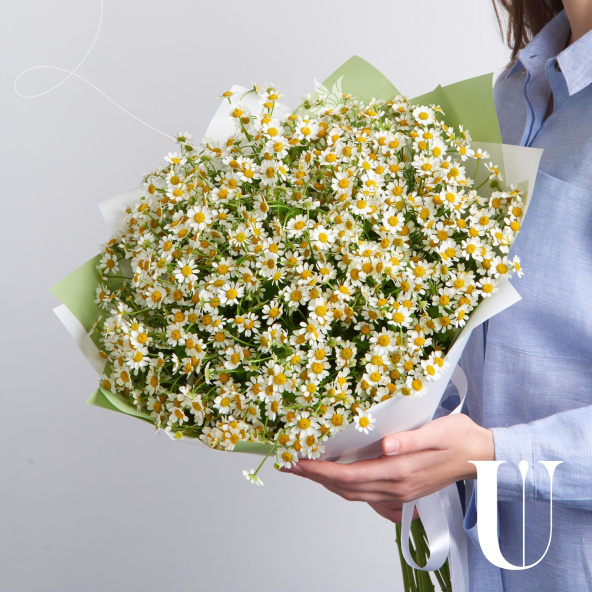 Букет из кустовой ромашки в дизайнерской упаковке