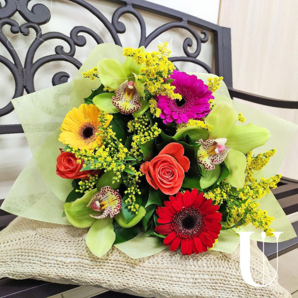 - Орхидея зеленая - 3 шт. Роза Вау - 2 шт
