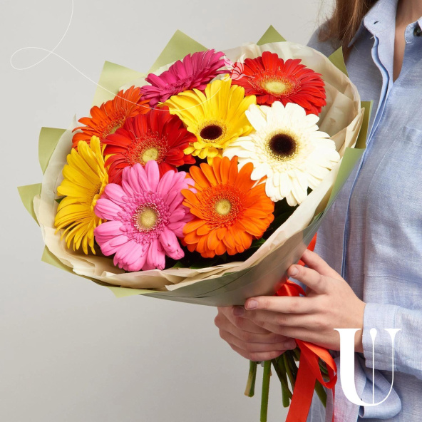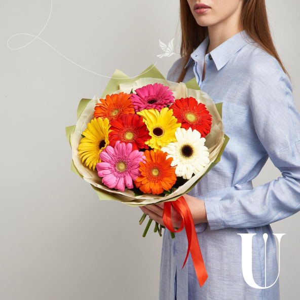 Гербера, микс - 9 шт
