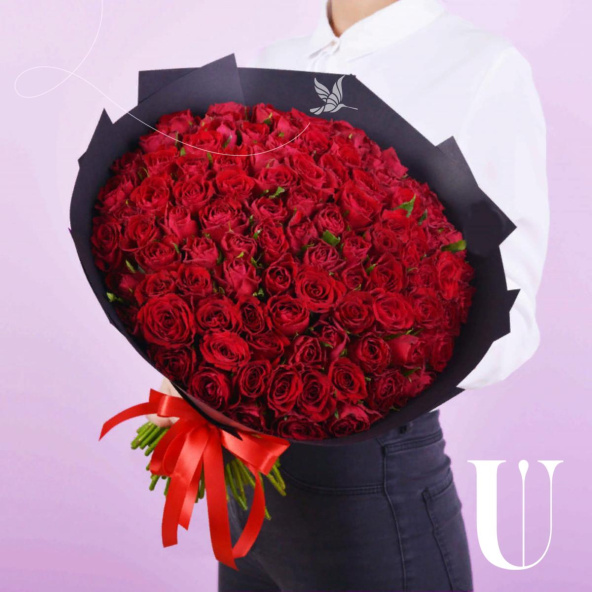 Монобукет из 25 роз Ред Наоми 60 см в упаковке