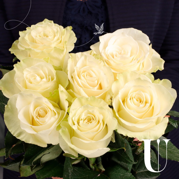 Монобукет из 25 жемчужных роз сорта Аваланж в матовой упаковке