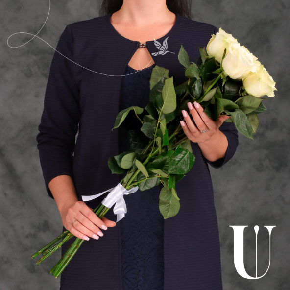 Кремовый монобукет из 19 роз сорта Талея в дизайнерской упаковке