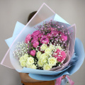 Монобукет из 11 роз Пинк Мондиаль в упаковке