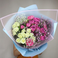 Монобукет из малиновых кустовых пионовидных роз в черной упаковке