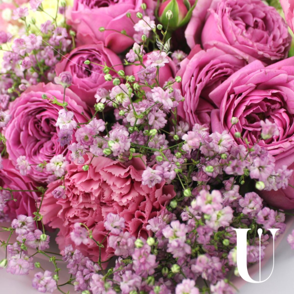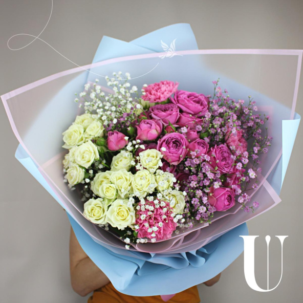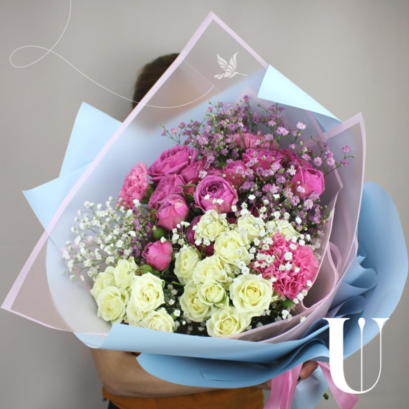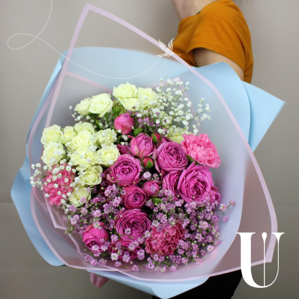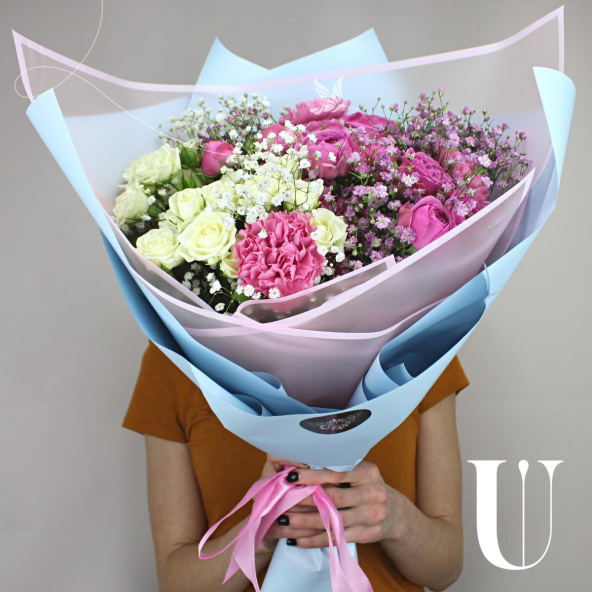 Монобукет из розовых роз Мисти Бабблз 50 см в упаковке тиффани