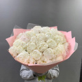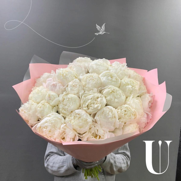 Пионы белые - 35 шт, упаковка пленка матовая полупрозрачная и нежно розовая, лента белая