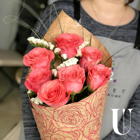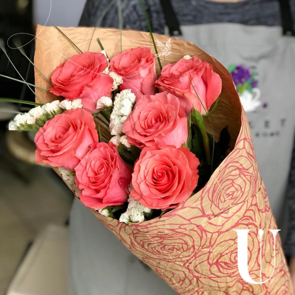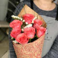 Монобукет из микса 11 роз Кения в матовой упаковке