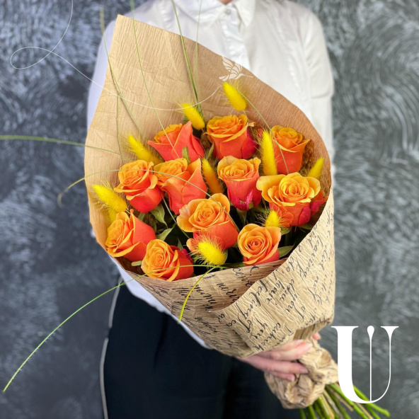 - Роза Эспания, Россия, оранжевая, 60 см - 11 шт