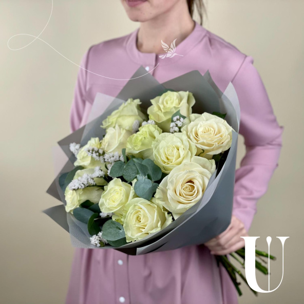 - Роза Мондиаль, Эквадор, белая, 60 см. - 11 шт