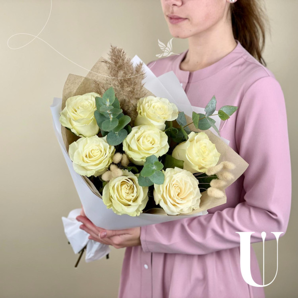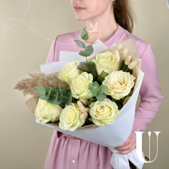 - Роза Мондиаль, Эквадор, белая, 60 см. - 7 шт