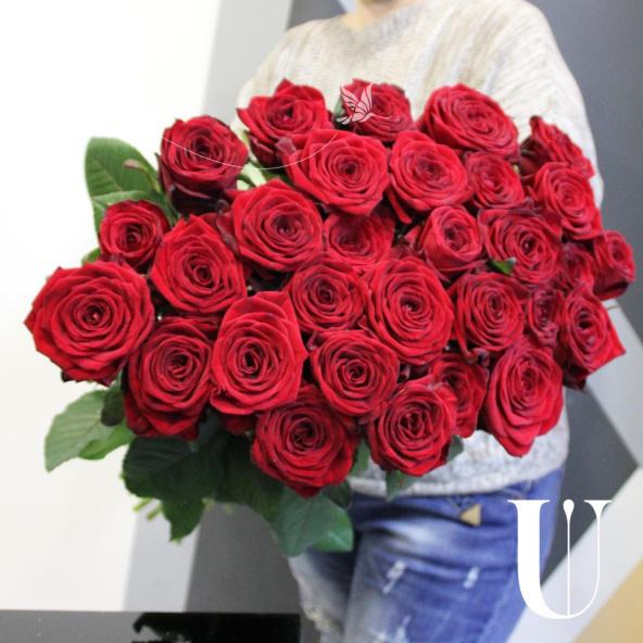 Монобукет из 25 роз сорта Ред Наоми с топпером