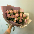 Монобукет из 25 жемчужных роз сорта Аваланж в матовой упаковке