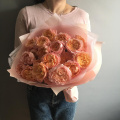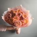 Монобукет из розовых кустовых роз в дизайнерской упаковке