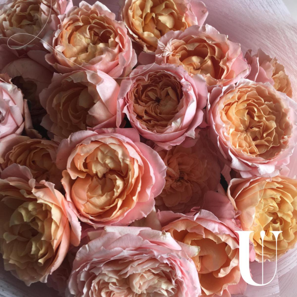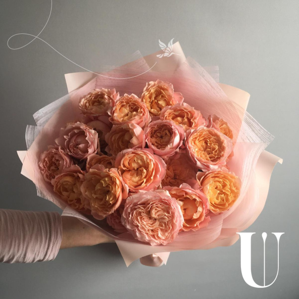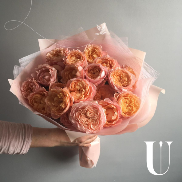 Букет из кустовых роз Лидия и роз Аваланж в дизайнерской упаковке