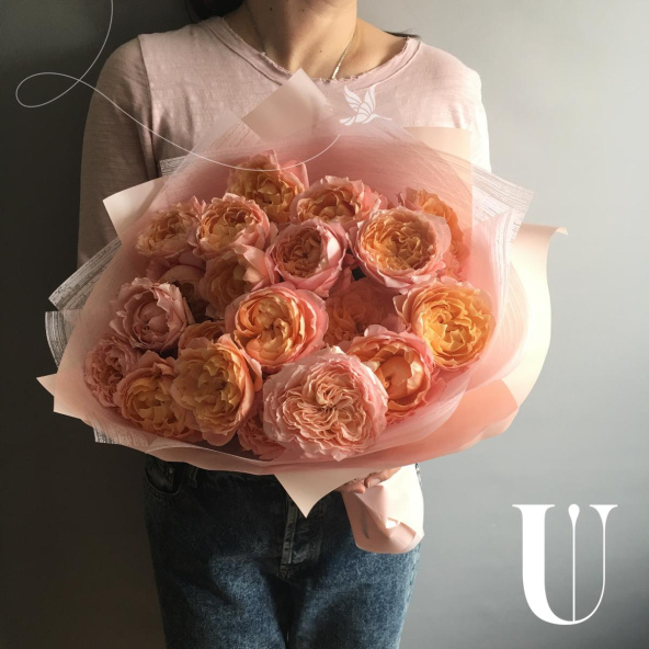 Монобукет из 15 розовых пионов сорта Сара Бернар