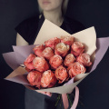 Монобукет из 9 роз сорта Пинк Охара в дизайнерской упаковке