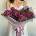 Монобукет из 5 фиолетовых гортензий в белой упаковке