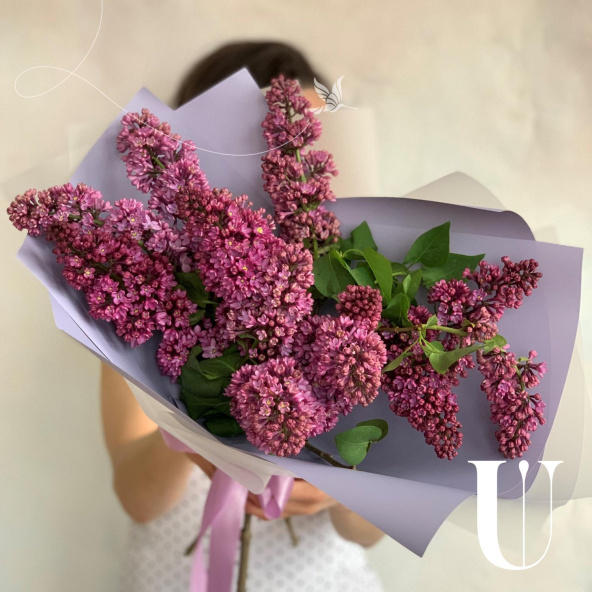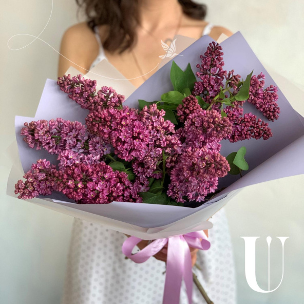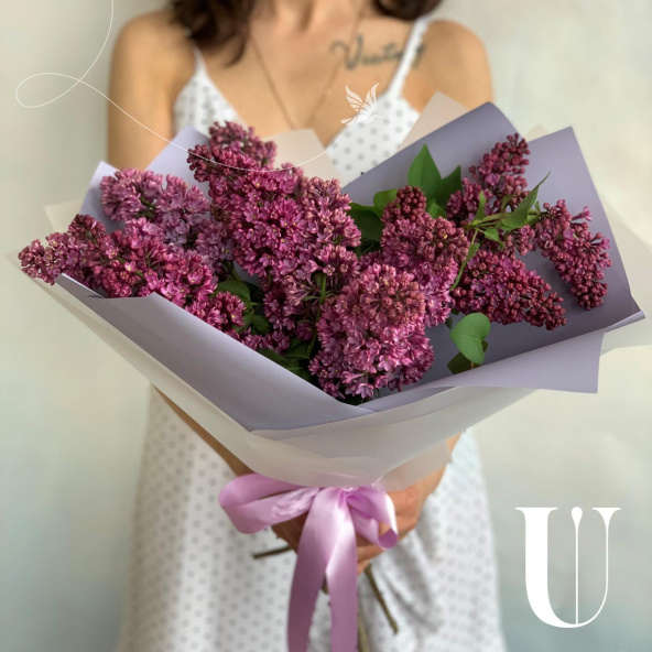 Монобукет из 25 фиолетовых тюльпанов в упаковке