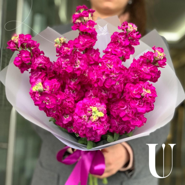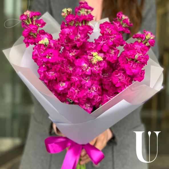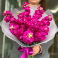 Монобукет из 5 белых маттиол в дизайнерской пленке