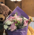 Монобукет из 5 розовых хризантем в светло-розовой упаковке