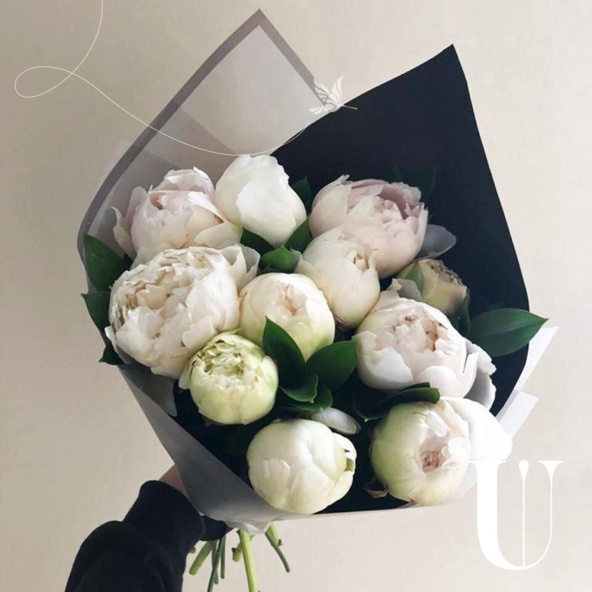Монобукет из пионов Сара Бернар и белых пионов