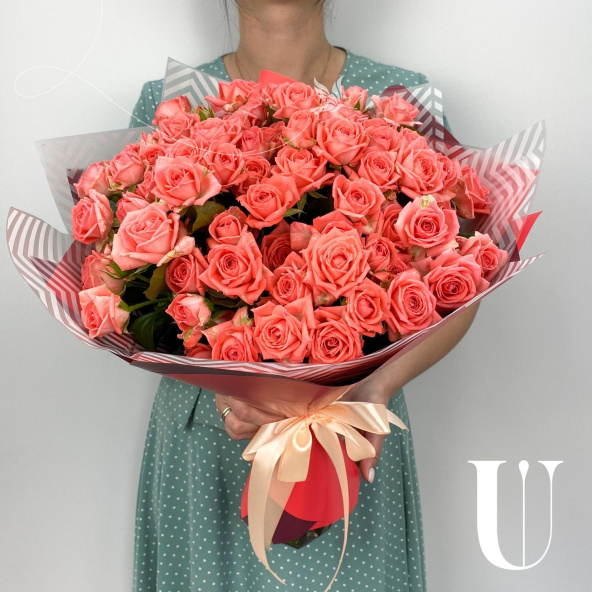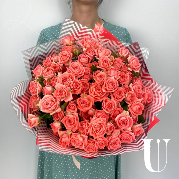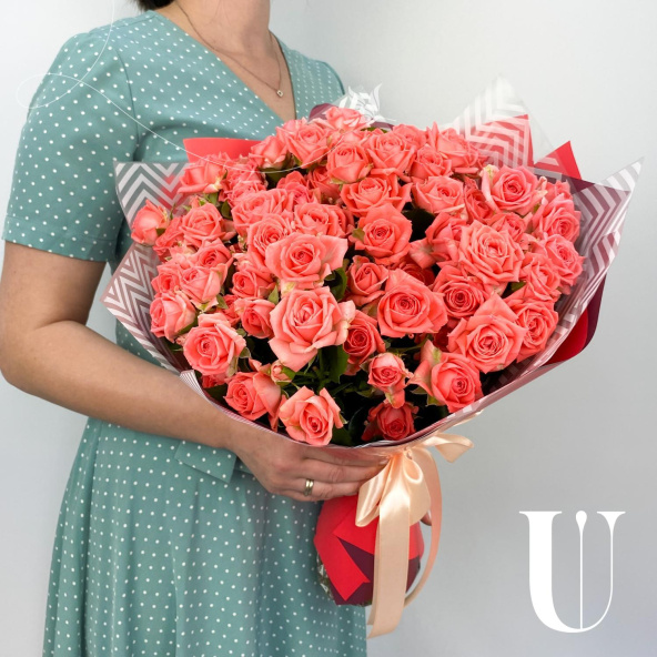 - Роза кустовая, Барбадос, Россия, коралловая, 50 см. - 19 шт