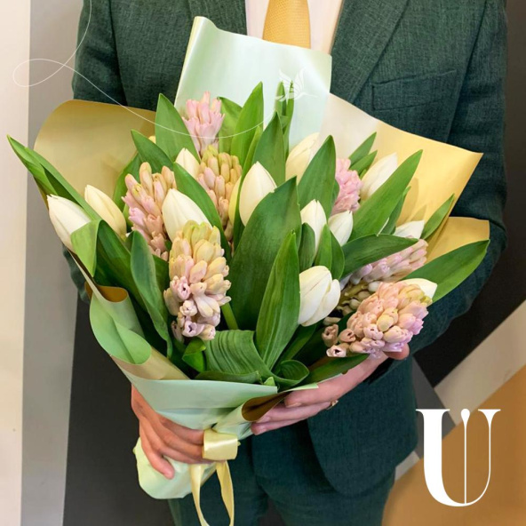 Монобукет из 25 белых тюльпанов в крафтовой упаковке