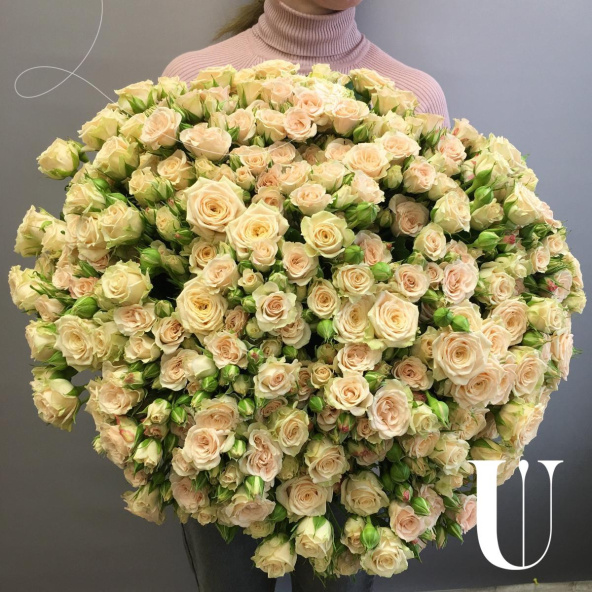 Охапка кремовых кустовых роз