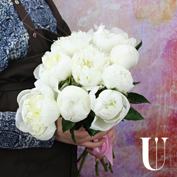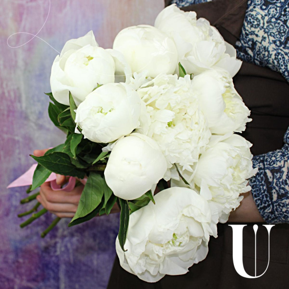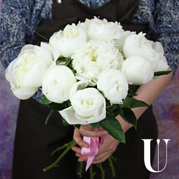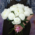 Монобукет из 25 белых роз в упаковке с атласной лентой
