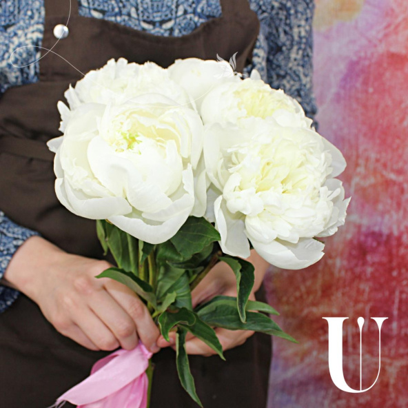 Монобукет из 5 роз Вайт Охара в дизайнерской упаковке