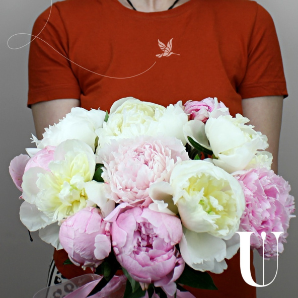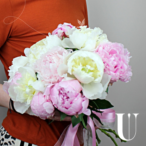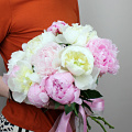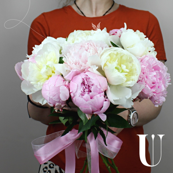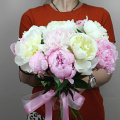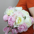 Монобукет из 25 белых роз в упаковке с атласной лентой