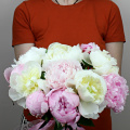Монобукет из розовых кустовых роз сорта Лидия в упаковке