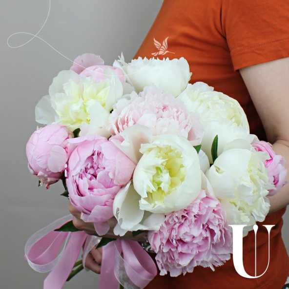 Букет из 11 розовых кустовых роз в дизайнерской бумаге