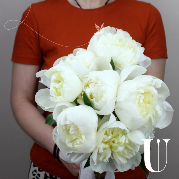 Монобукет из 25 белых роз в упаковке с атласной лентой