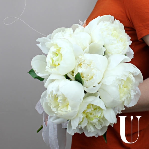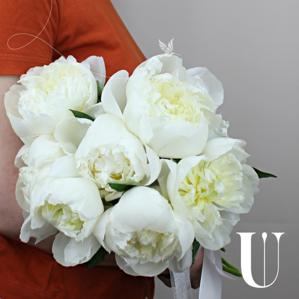 Монобукет из пионовидных роз сорта Лондон Ай в упаковке