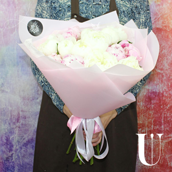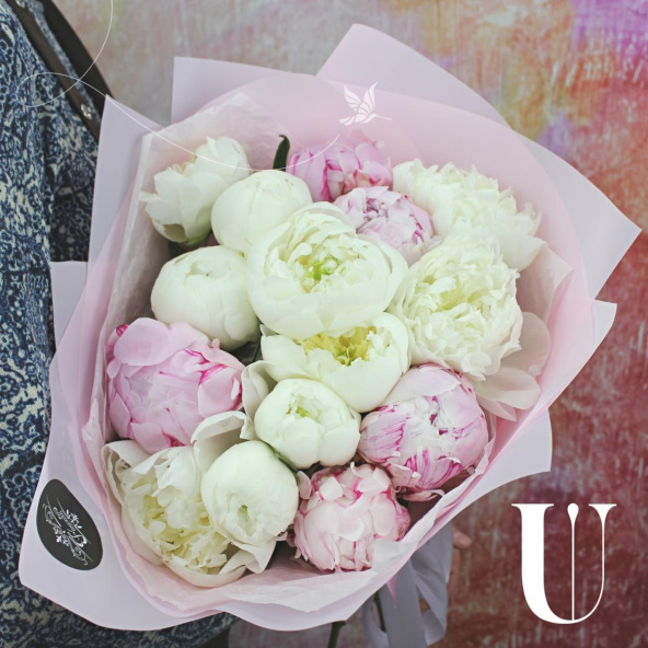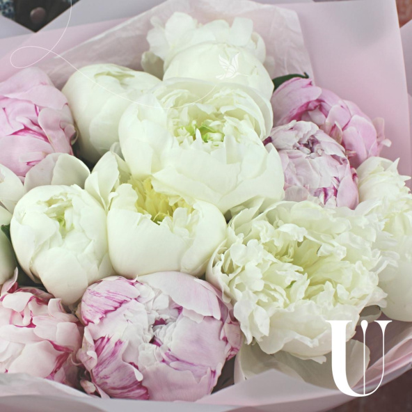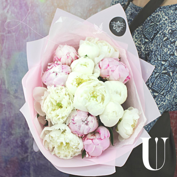 Монобукет из 9 розовых пионов сорта Сара Бернар
