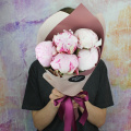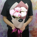 Монобукет из 3 розовых пионов в упаковке