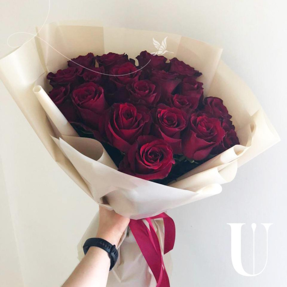 Монобукет из 19 больших красных роз сорта Ред Наоми