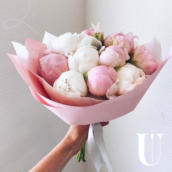 Монобукет из 9 коралловых пионов сорта Корал Шарм