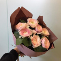 Нежные кустовые пионовидные розы в дизайнерской упаковке