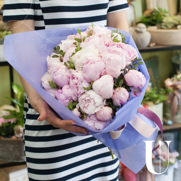 Букет состоит из 25 розовых пионов, которые являются символом любви и нежности. Пионы обладают приятным и стойким ароматом, который будет радовать вас и ваших близких на протяжении долгого времени.