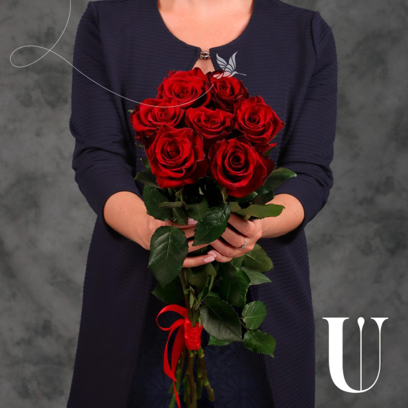 Классическая композиция из 9 роз сорта Принцесс Краун