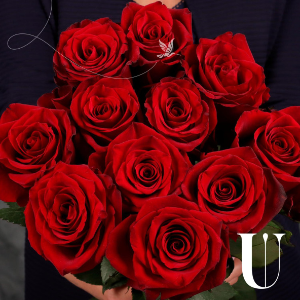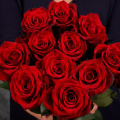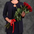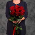 Монобукет из 15 вывернутых роз сорта Нина в матовой упаковке