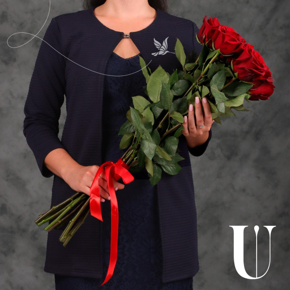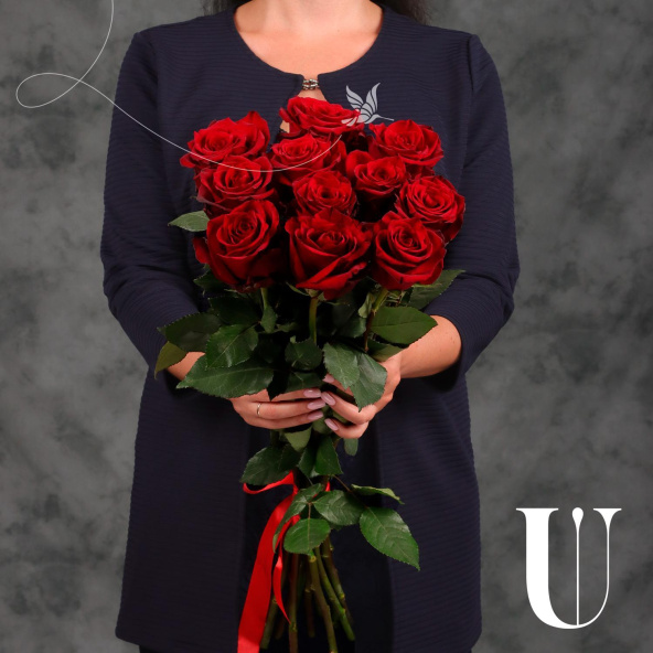 Монобукет из 19 роз сорта Миритим с атласной лентой