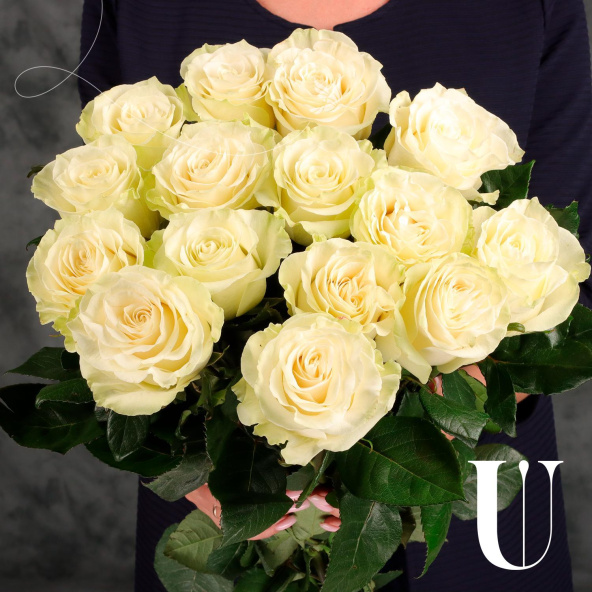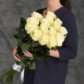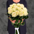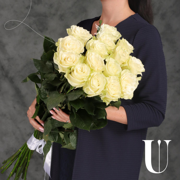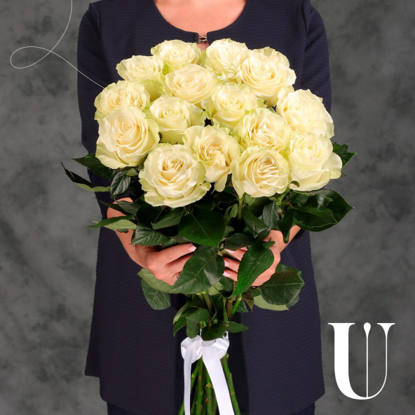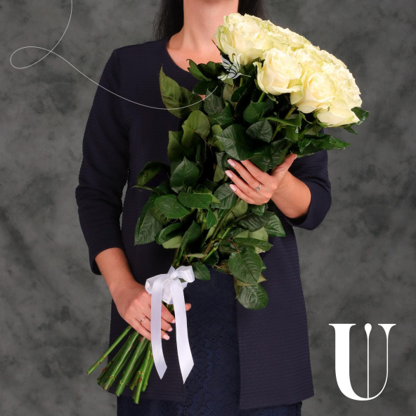 Монобукет из 19 белых роз в дизайнерской упаковке