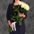 Монобукет из 51 белой розы Аваланж 40 см в глянцевой пленке