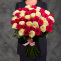 Монобукет из 51 розы сорта Мондиаль 70 см