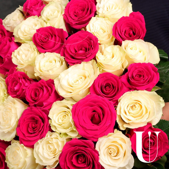 Букет из 45 белых и розовых Эквадорских роз, 70 см