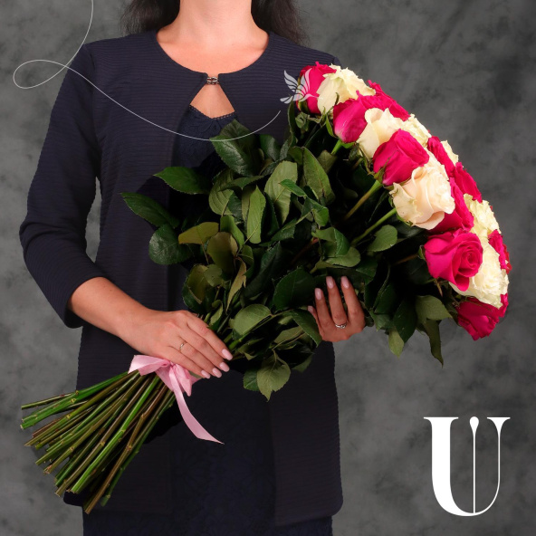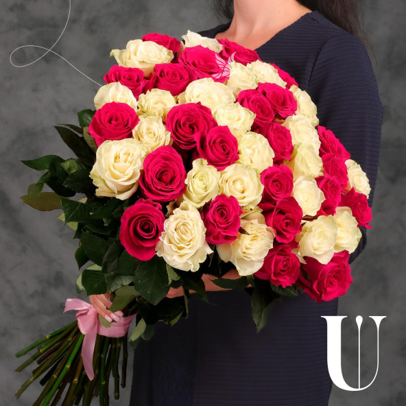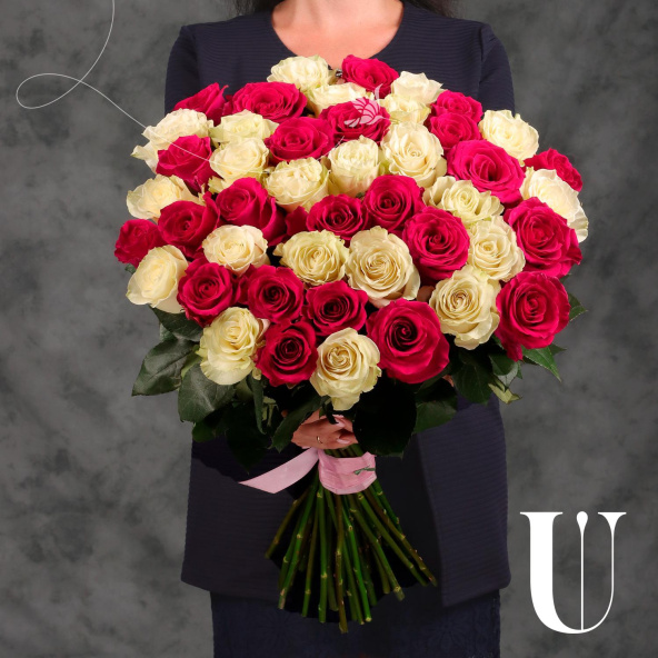 Букет "45 белых и розовых Эквадорских роз 70см"