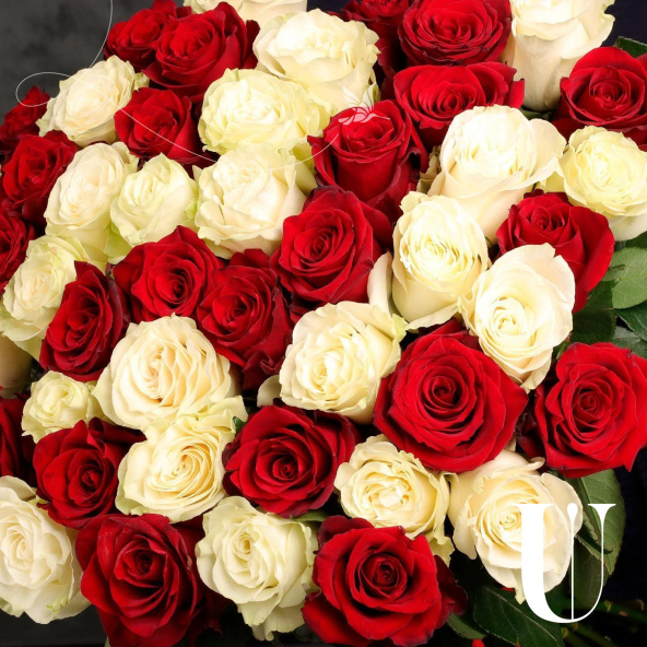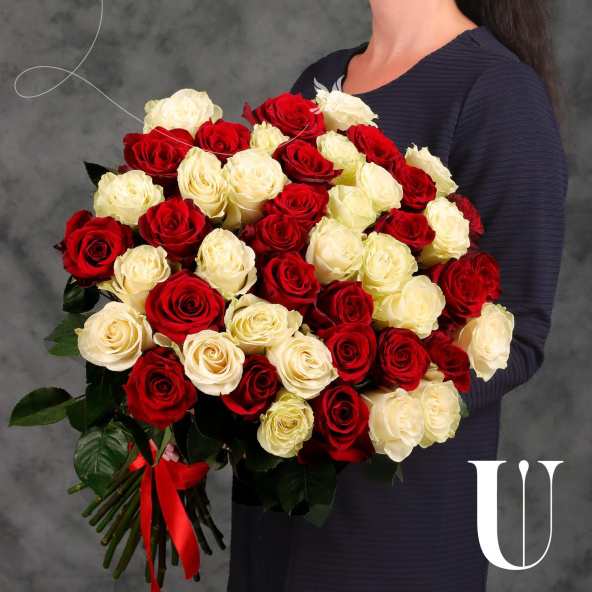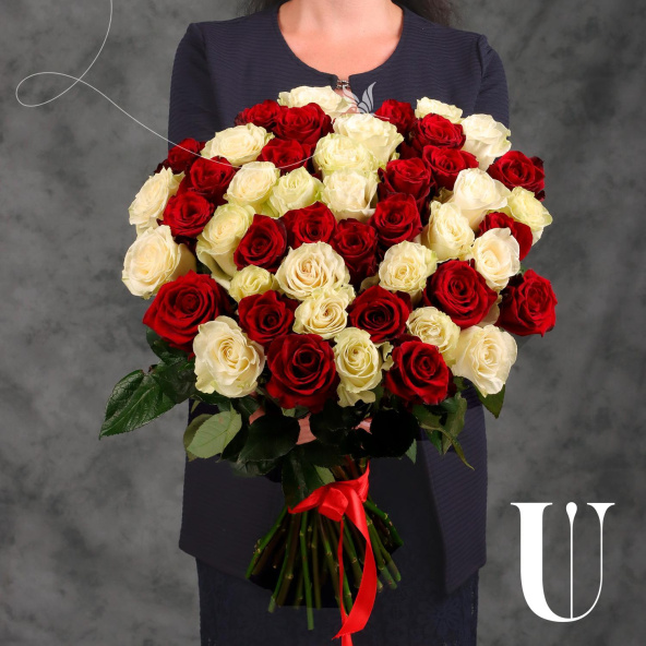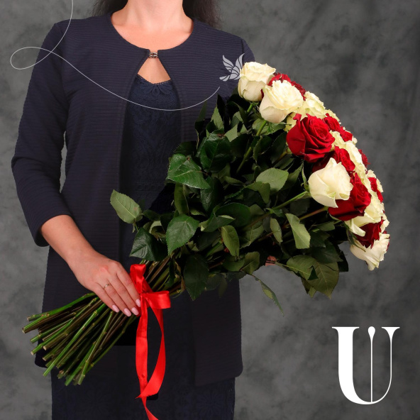 Букет "45 красных и белых Эквадорских роз (70 см)"